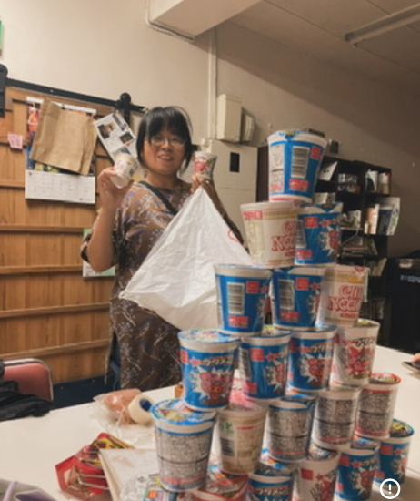 ゆずりはへ駄菓子とラーメンの寄付へいく。